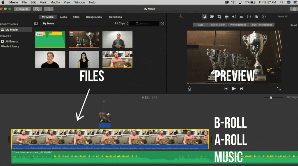 Shooting is done, which means it's time to enter post-production or the editing process. There's a real art to video editing, and it can either make or break your video. The good news is there are plenty of free programs you can use that are user-friendly. If you're an iPhone user, iMovie is all you need to edit basic videos, and it comes included with your iPhone or Mac. So what is editing all about? In short, it's how you handle the transitions from shot to shot. In other words, videos are made up of multiple takes, and the editing process is where you string them all together. The end goal is to create a cohesive recreation of your script by choosing the strongest takes. Yet, you'll soon find that you need ways to hide specific transitions and smooth out other ones. An example would be when you cut to a different shot of the same person in the same place. This is known as a jump cut, and it was once considered a grave mistake in filmmaking. Yet, jump cuts have become far more prevalent in today's age - thanks in no small part to YouTube creators. Yet, they don't always look good, so you'll want to have a way to avoid them. That's where B-roll comes into play. B-roll footage is anything extra you capture to enhance your video and hide transitions. B-roll can be all sorts of things - stock footage, scenic landscapes, buildings, etc. What's important is that your B-roll relates to the main video in some way. As long as it does, you can use any type of footage that you want here.Breaking down the editing process
