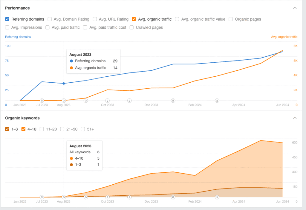 While we were able to quadruple the client’s traffic in just 6 months, that figure rose to 6x after 10 months (and it’s still climbing).