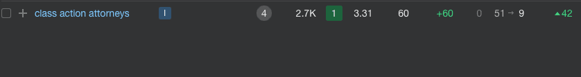 For example, before we got started, the client ranked in position #51 for the keyword ‘class action attorneys,’ which is a HIGHLY competitive keyword.