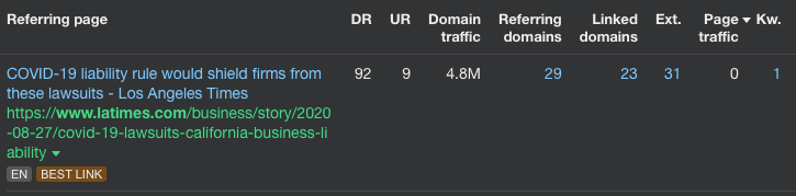 It has an EXTREMELY high domain rating (which represents the ranking power of the domain) of 92, which definitely boosted the client’s authority significantly.