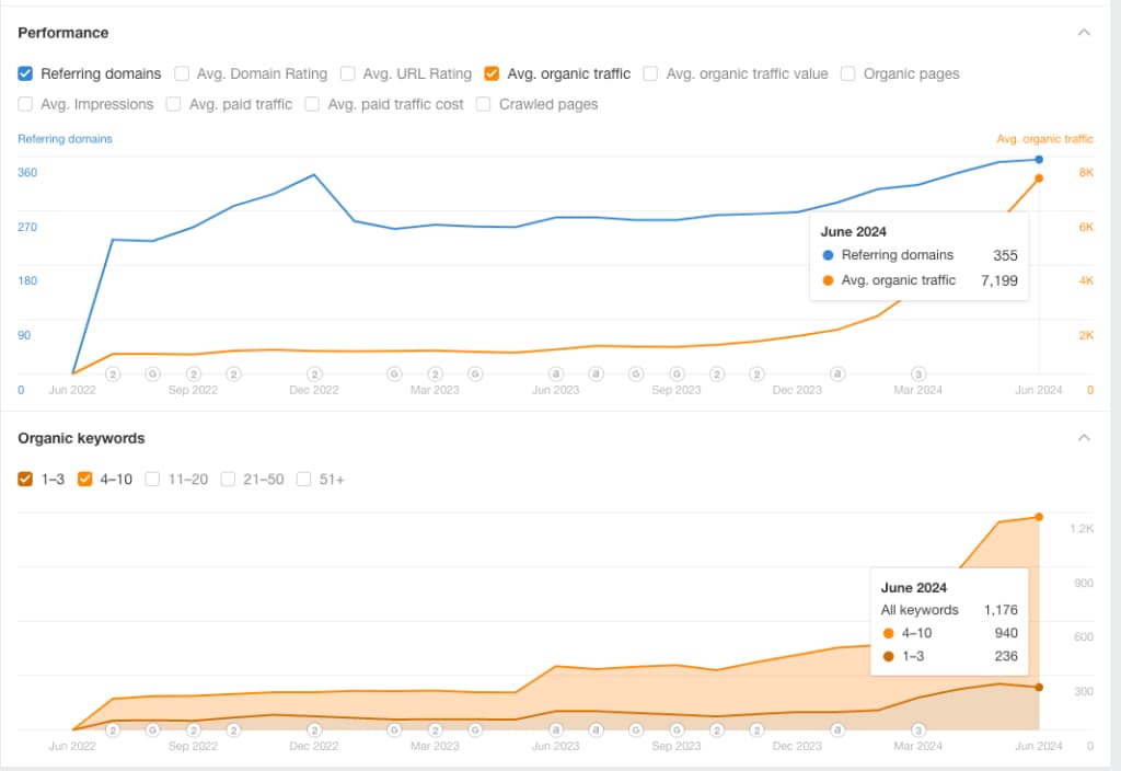 They also grew from 218 keywords to 1,176, with 236 keywords ranking in the top 3.