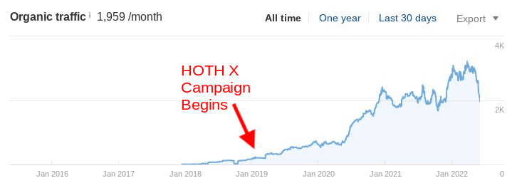 After a few years of modest growth, this client decided to enroll in HOTH X in 2019 and that’s when the real action started!