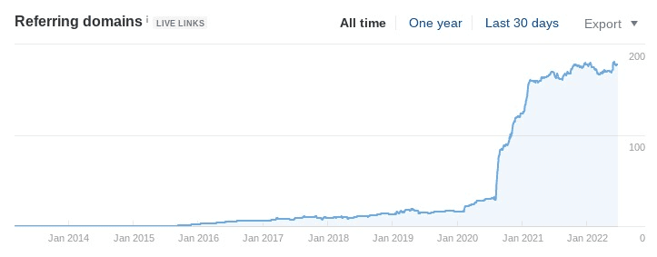 There have been a few points over the years when their traffic spiked to over 1,000 monthly visitors after publishing a particular link outreach, but the traffic failed to remain at that level for long.