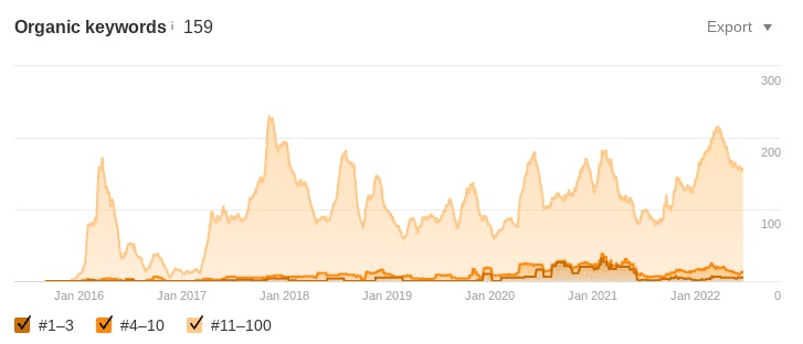 The client’s keywords experienced ups and downs over the years, but our campaign managed to double them from around 100 to over 200 in 12 months.