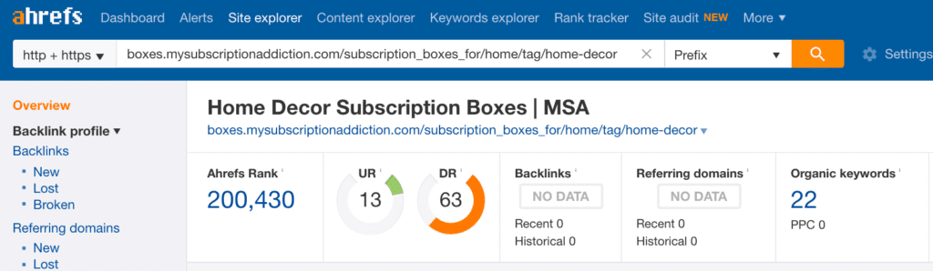 Domain Rating (DR) and URL Rating (UR) are Ahrefs’ equivalent of Moz’s Domain Authority and Page Authority.