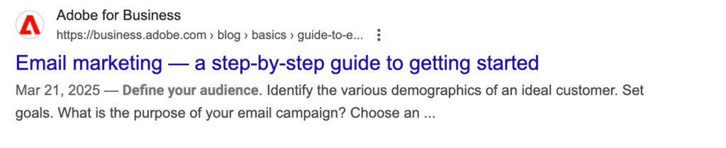 Google shows meta descriptions under your page’s title in the search results. They’re an opportunity to persuade users to visit your website.