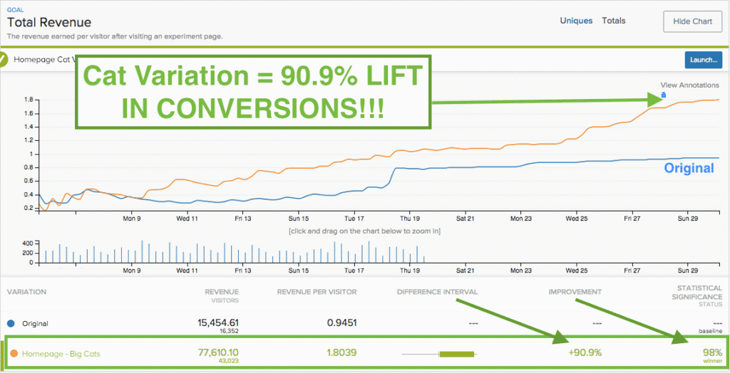 The studies prove that literally just integrating cat pictures into your website was the single differential that performed well across the board in all demographics.