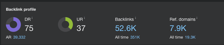 As you can see, they have an excellent Domain Rating (DR) and loads of backlinks coming from tons of referring domains.