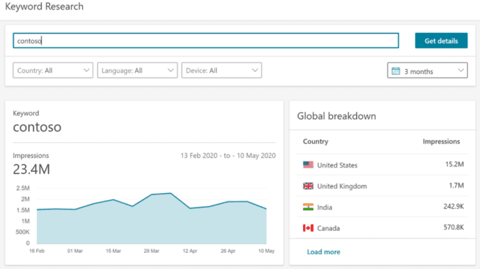 Something to bear in mind when researching keywords is that most tools are configured for Google only. This means the data you receive won’t pertain to Bing, so you’ll need to use tools that include its search data. The best way is to use Bing’s very own Keyword Research Tool, which is included in its Webmaster Tools.