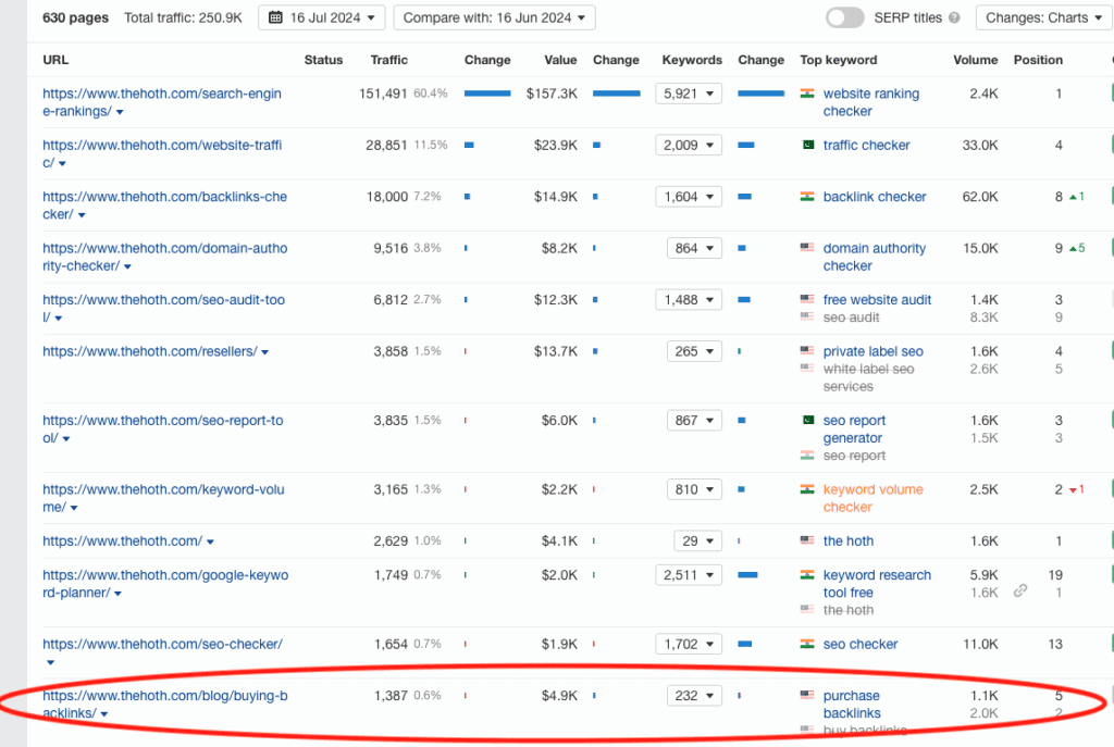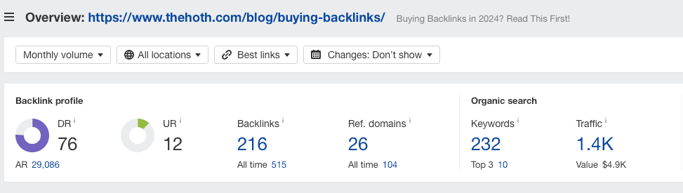 It’s a piece on buying backlinks, and it has an impressive organic traffic value of $4.9k.