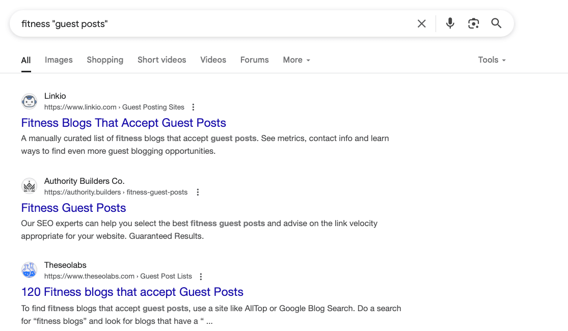 Boom, now we’ve got plenty of outreach targets for fitness-related guest blogs.