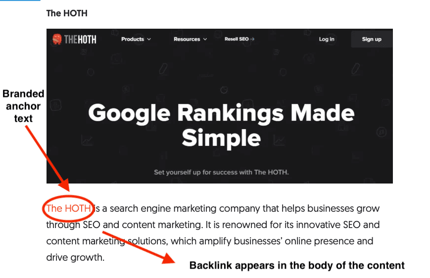 As you can see, our backlink appears within the body of the page’s content, and the website uses our brand name as anchor text (which is great).