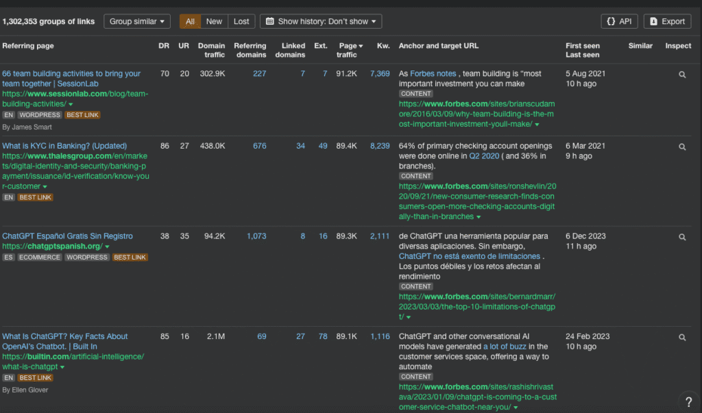 This will show you a list of every single backlink the domain has. In this case, we’re sticking with Forbes as our example: