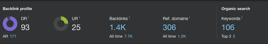 If we look at their SEO metrics using Ahrefs, we can see that they have a meager Domain Rating (DR) of only 56.
