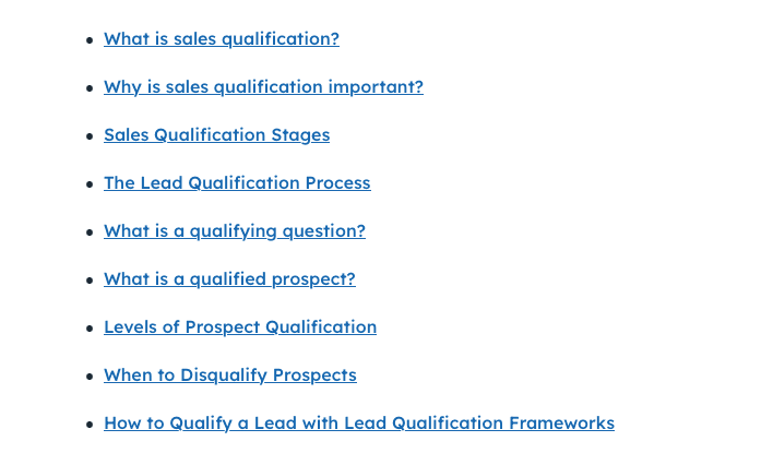 Want to see proof of the effectiveness of content clusters? That’s not a problem, as the internet is filled with countless examples of successful content clustering. A notorious example is Hubspot, as they restructured their entire blog years ago to follow the content cluster model. For instance, they have a strong content cluster built around the topic of sales qualification: