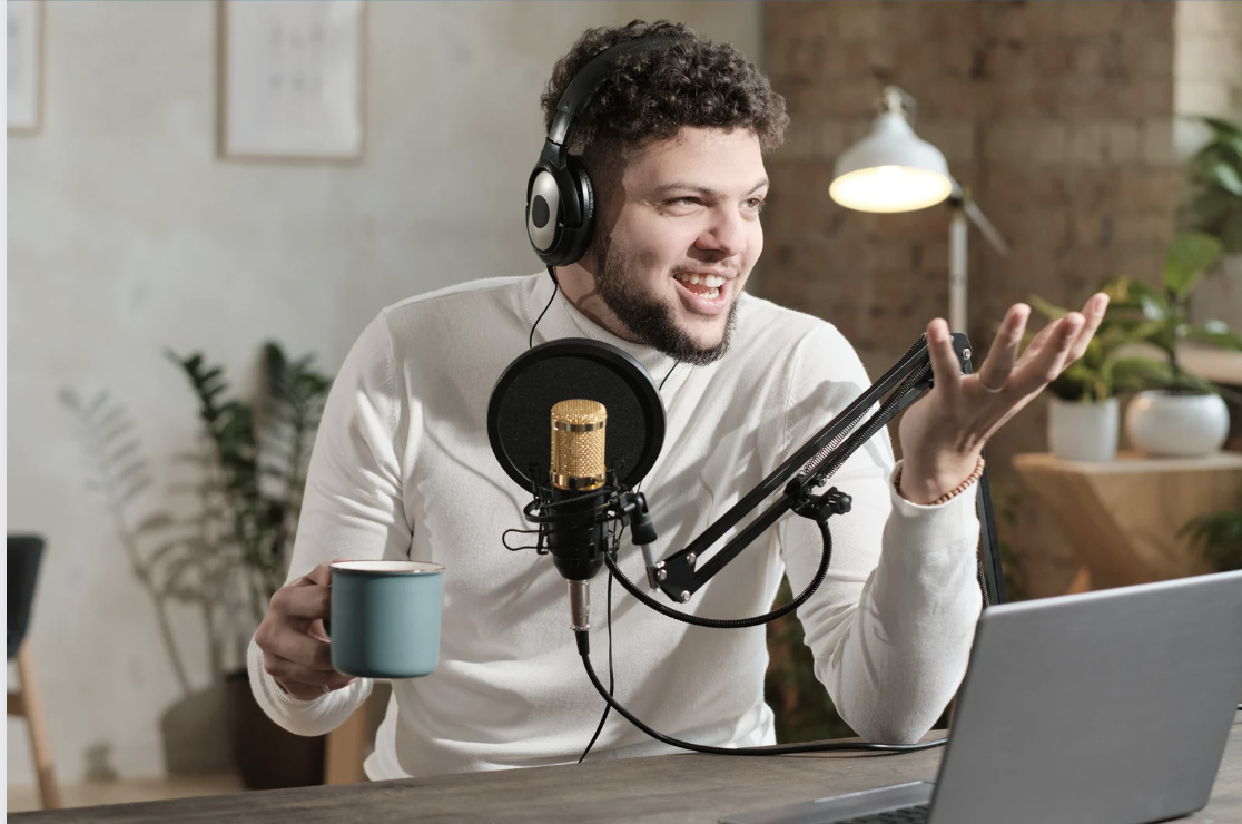 man doing a podcast