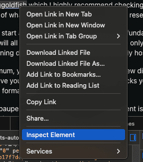 The first method is the most technical, but it’s actually really easy to do. Right-click on any link you want to inspect, and click on Inspect or Inspect Element. If you’re using Safari on a Mac, you’ll need to go to Settings > Advanced Settings and make sure Show features for web developers is enabled.