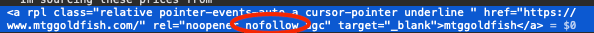 This will take us straight to the link’s HTML, where we can clearly see the nofollow tag: