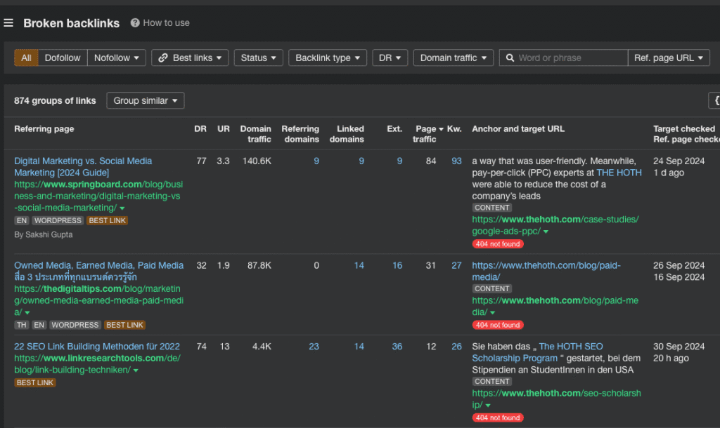 Voila, this will bring up a report containing all the broken backlinks that point to your website.