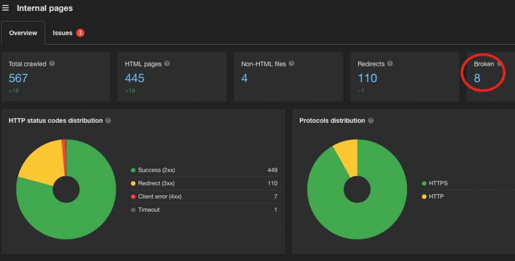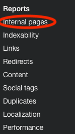 This will take you to a page overviewing the internal pages on your website, including the presence of any broken links.