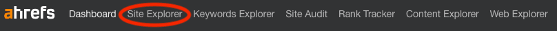 Here’s how to grab all your backlink data and export it as a CSV file for further analysis. First, log in to Ahrefs and navigate to the Site Explorer tool (located in the navigation bar at the very top of the page):