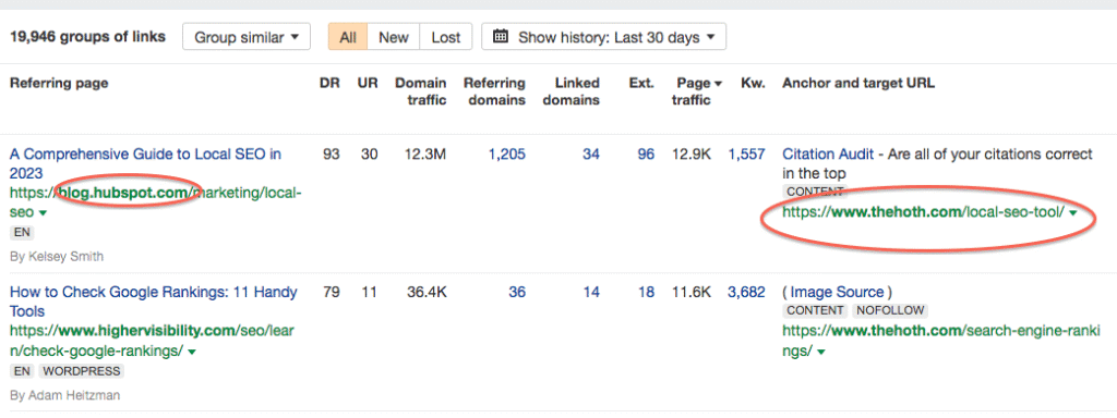 There’s an SEO-specific reason why we have so many free tools that anyone can use on the HOTH website. Besides wanting to help as many people as we can, free tools are a fantastic way to acquire high-authority backlinks naturally. For instance, how many website owners need to conduct keyword research and check competitor backlink profiles each day? The answer is in the thousands. For example, many website owners flock to our free SEO tools (the keyword planner tool and backlink tool in particular) to meet their needs. Beyond that, they also share our tools on their websites, blog posts, and social media profiles, generating loads of backlinks. For instance, Hubspot included a link to our local SEO tool in one of their blogs, which you can see here: