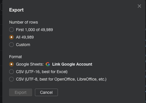 After entering the query into the tool, 50 results load for us (with the option to view more).