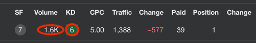 7. Identify keywords with high search volumes but manageable competition (KD means keyword difficulty score).