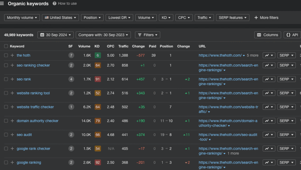 6. Use the position filter to see keywords where your competitor ranks in the top positions (1-10). These are high-value keywords.