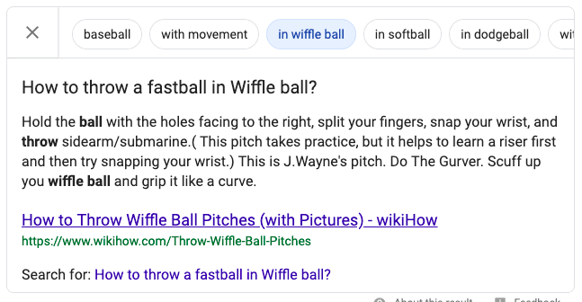 In the example above, the snippet contains related terms that searchers can click on to find other featured snippets. This is the 'people also ask' section. If you click on one of the terms, the search query will change to the selected term, and you'll see the new snippet for it.