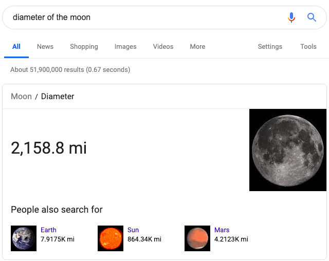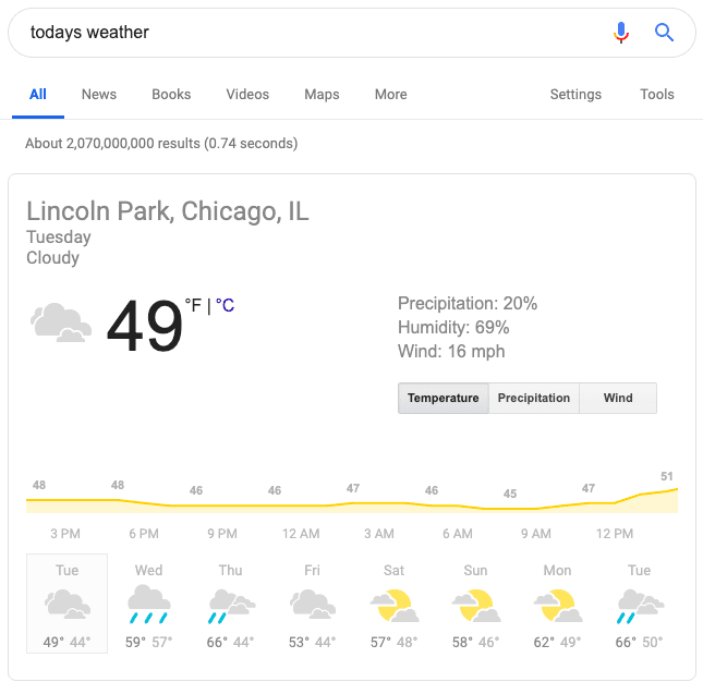 A knowledge card appears nearly identical to a featured snippet with one key difference - it doesn't draw information from one website. Instead, all the data comes from Google's Knowledge Graph. These features are Google's way of enhancing its user experience and don't have anything to do with SEO. Knowledge cards and graphs often answer quick questions (such as a company's founding date), make a calculation, or provide weather forecasting. You can think of them as answer boxes instead of featured snippets.