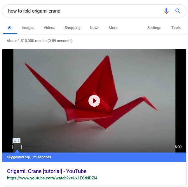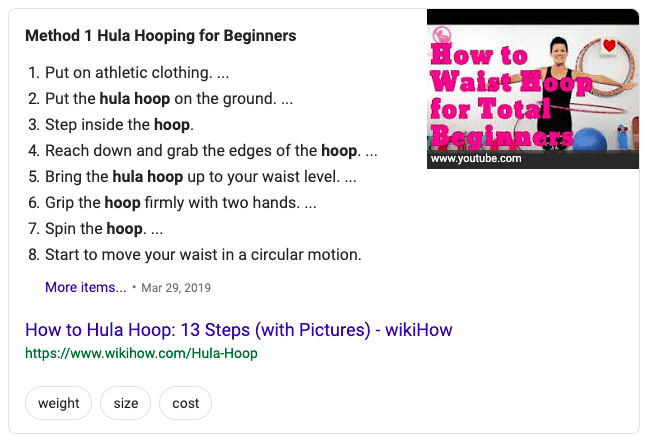 Lastly, Google will sometimes link to a related YouTube video in the featured snippet - complete with a timestamp on the spot in the video containing the answer to the query.