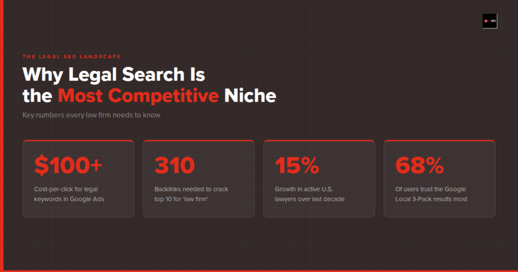 Keywords like “personal injury lawyer near me” can cost $100 or more per click in Google Ads. Everyone from solo practitioners to massive firms is competing for the same handful of spots on page one. And with AI tools like ChatGPT, Perplexity, and Google’s AI Overviews now answering legal questions directly, the stakes have never been higher.