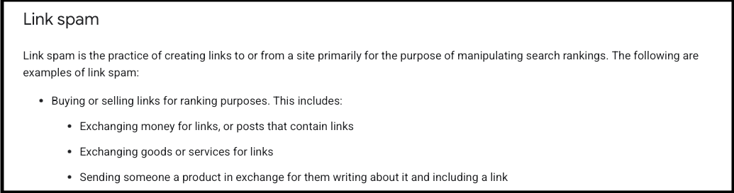 Instead, Google wants to see that you acquire backlinks naturally through publishing great content.