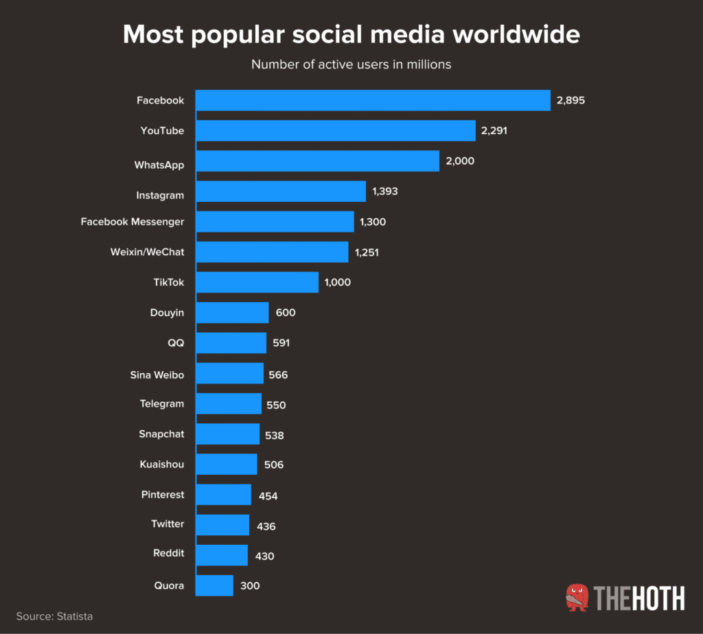 There are tons of social platforms out there, so which should you prioritize when creating engagement posts? Surprisingly, Facebook is still the king of social media worldwide, with roughly 3.05 billion active monthly users during Q3 2023.
