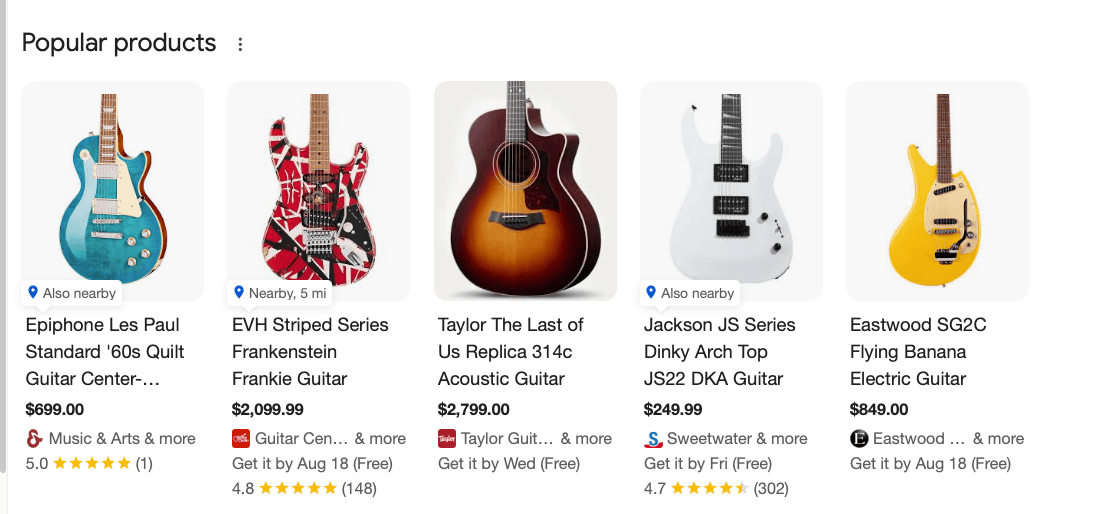 Your product pages are revenue drivers, so it’s crucial to provide detailed schema markup for them. This ensures that LLMs and search algorithms won’t have to guess about things like product names, prices, and specifications. Essentially, you want to leave nothing to the (mechanical) imagination when it comes to information about your products. The more detailed and clear your schemas are, the more likely LLMs are to cite your content and products to their users. Detailed schema markup also improves traditional SEO, so you’ll have the added benefit of appearing in things like product carousels on Google: