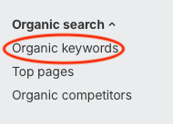 This will direct you to the Overview page, but we want to go to the Organic Keywords report (located under Organic Search on the left-hand sidebar):