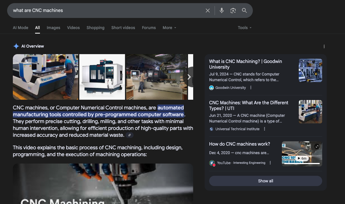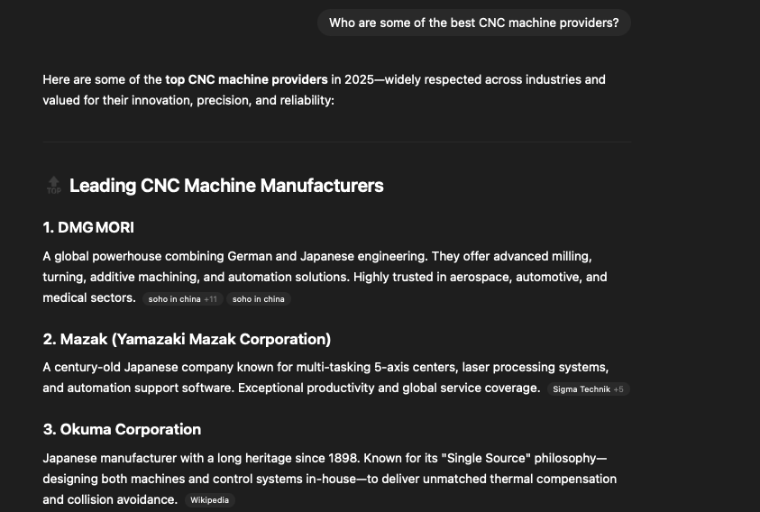 As an example, here’s a prompt you should look up if you provide CNC machines: