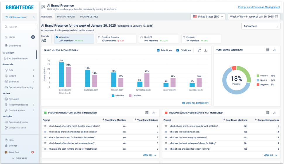 Out of all the emerging AI search tools, BrightEdge’s AI Catalyst is one of the few that actually offers structured data on AI mentions.