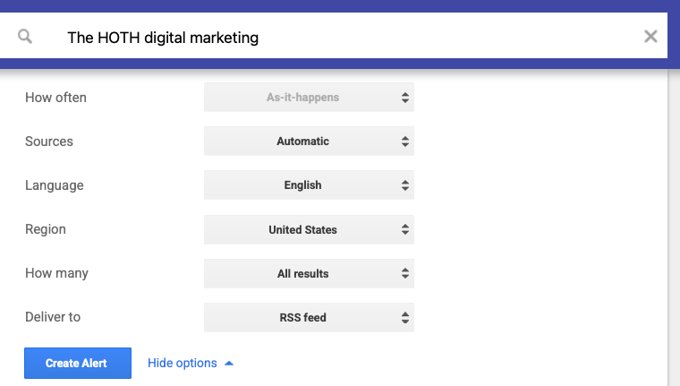 Let’s take a quick look at Google Alerts since it’s the only free option.