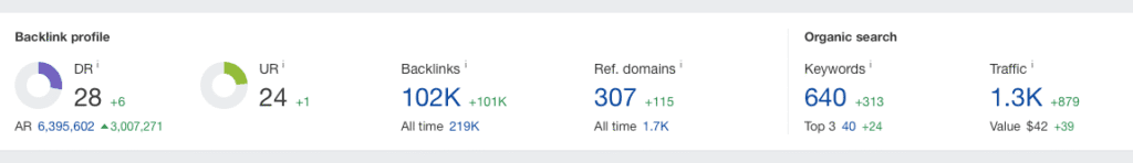 Just 3 months after implementing the client’s fixes, their Domain Rating score improved by 8 points, they saw 24% more traffic, and they began ranking for more keywords.
