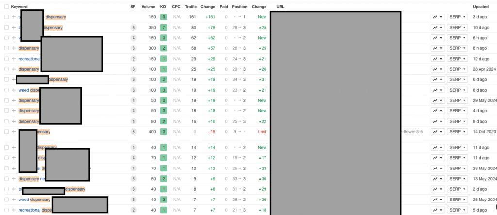 Once we got our client’s cannabis dispensary site in tip-top shape, we moved on to looking for ‘easy-win’ keywords.