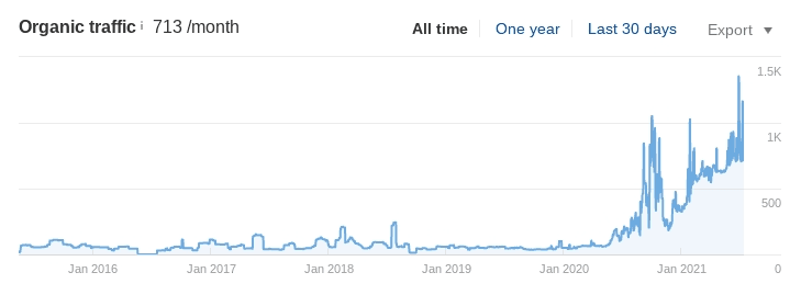 After a few months with this new strategy, we were excited to report results to the client. Their traffic started to spike in the middle of 2020.
