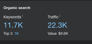 They’re also ranking for over 11,000 keywords related to their business, with 1,000 keywords ranking in the top 3.