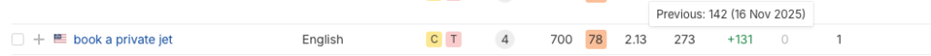 There were also massive improvements to crucial keyword rankings, such as this keyword that jumped a whopping 131 positions to position #1: