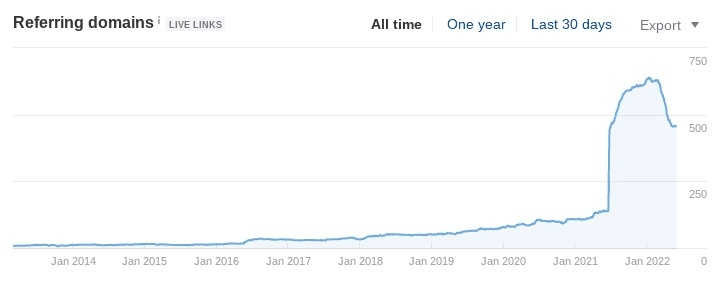 Referring domains or backlinks had been growing slightly since their site first launched. They had approximately 140 links.