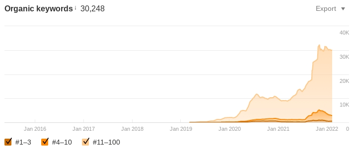 And, as you guessed it, new keywords had a lot to do with this growth. All of the new content and link outreach we churned out resulted in more than 3X the keywords from 9,000 to 30,248.