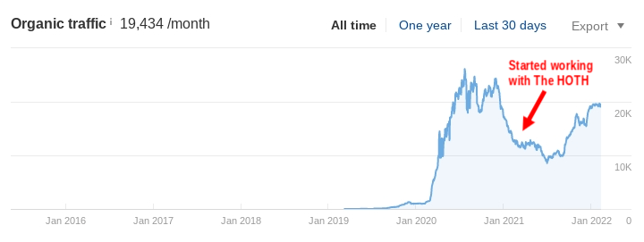 It’s clear that something was working for Adam’s site before he contacted us in February 2021, but for whatever reason, those activities halted and his traffic dropped.