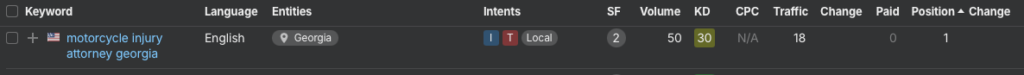 They also saw a 138% increase in top 3 keywords, adding 18 new crucial search terms into the mix. The client now ranks in the #1 position for highly competitive transactional keywords like ‘motorcycle injury attorney Georgia.’