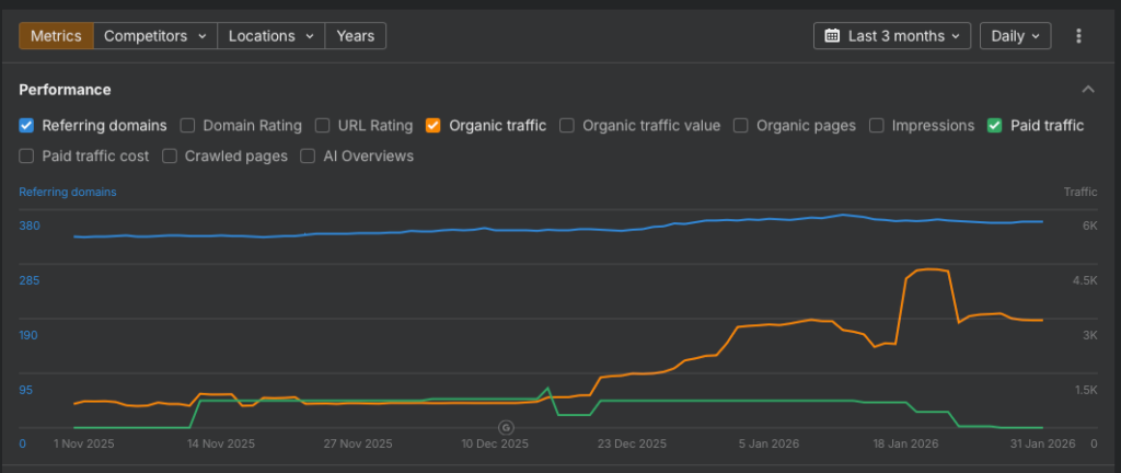 Our agency checked both boxes, and we were able to provide a significant boost to the client’s traffic (+2.5k), keywords (+138%), and AI citations (83) in only 90 days.
